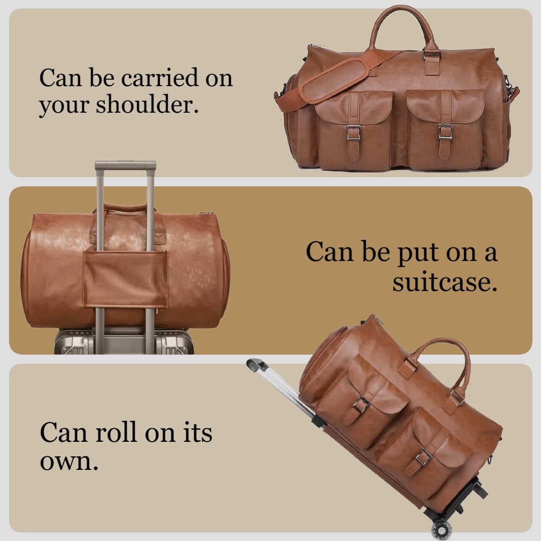 Every detail is developed and refined from traveler feedback to handle actual trips: long walks through terminals, tight overhead bins, business travel with formal wear, and holiday packing with one single bag instead of two. Durable leather, reinforced construction, and a layout that keeps performing trip after trip means you’re investing in something designed to last for years.